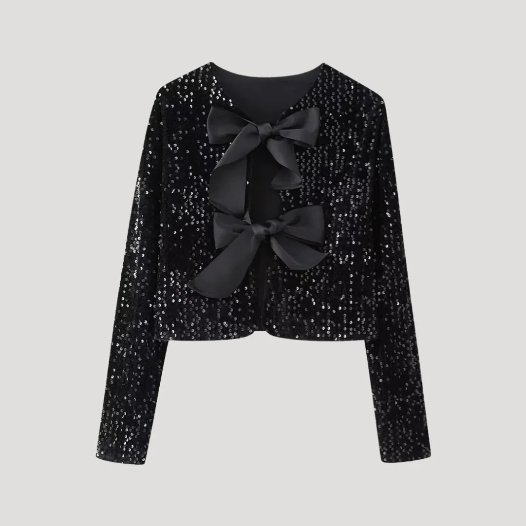 MEWE | Cropped Sequin Jacket with Bow Closure